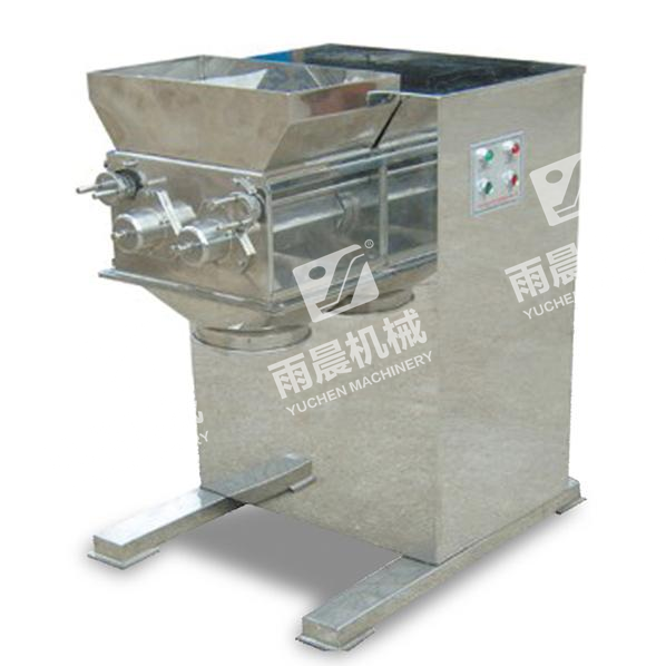 By using mechanical transmission to make two rollers swing back and forth simultaneously, the material is extruded from the sieve into granules or crushed into granules or quickly granulated. It has the advantages of simple operation, high yield, simple and compact structure, and small footprint.