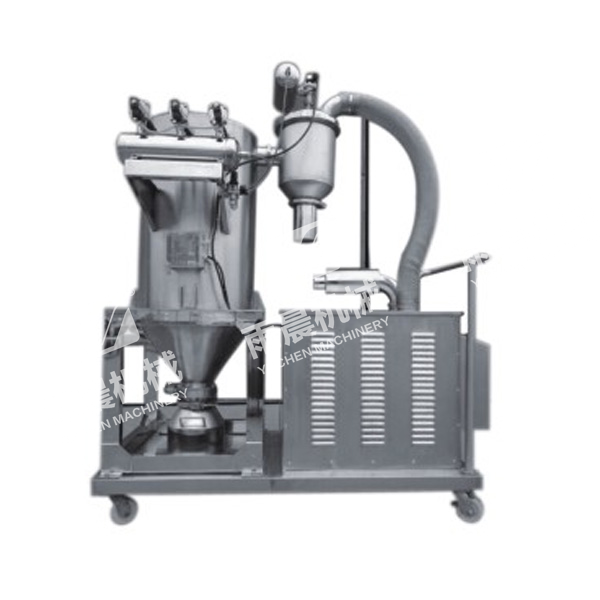 This machine is a new product developed based on the extensive absorption of similar foreign products. Currently, it is an advanced, ideal, and complete vacuum feeding equipment for powdered materials, granular materials, and powder granular mixtures in China. The vacuum feeding machine can automatically transport various materials to hoppers such as packaging machines, tablet presses, capsule filling machines, injection molding machines, crushers, etc. It can also directly transport the mixed materials to mixers (V-shaped mixers, two-dimensional mixers, three-dimensional mixers, etc.), reducing manual labor intensity and solving problems such as dust overflow during feeding. It is a GMP certified equipment for pharmaceutical and food factories to promote clean and civilized production.