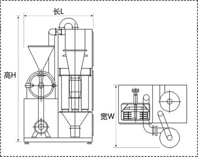 本機組有主機、輔機、集管道、電控器定量加料裝置為一組。輔機有旋風和脈沖式除塵器、主機內裝有離心分級裝置,除可完成粉碎外,還具有分級功能,分選式離心剪切,五篩五網,粉狀顆粒可以任意調節,物料粉碎后采用負壓輸送至排料閥出口。達到制品要求,該機組是制藥、食品化工工業的理想機械。