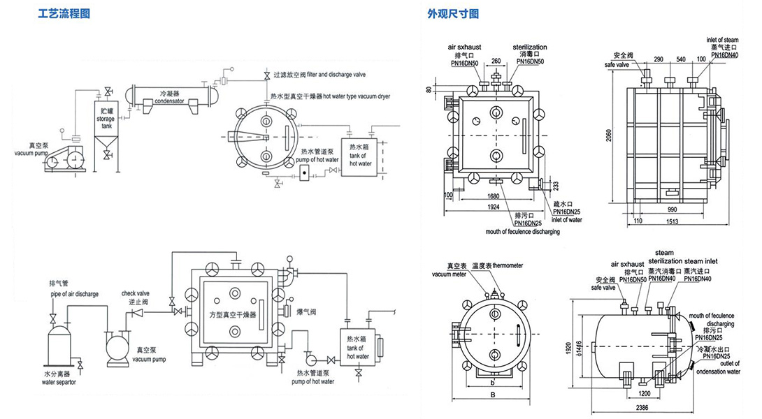 如果采用冷凝器,物料中的蒸發溶劑可通過冷凝器加以回收,是一種常用的干燥設備。如果采用JZJS-70水環泵真空機組,可不用冷凝器,則節省能源、投資。